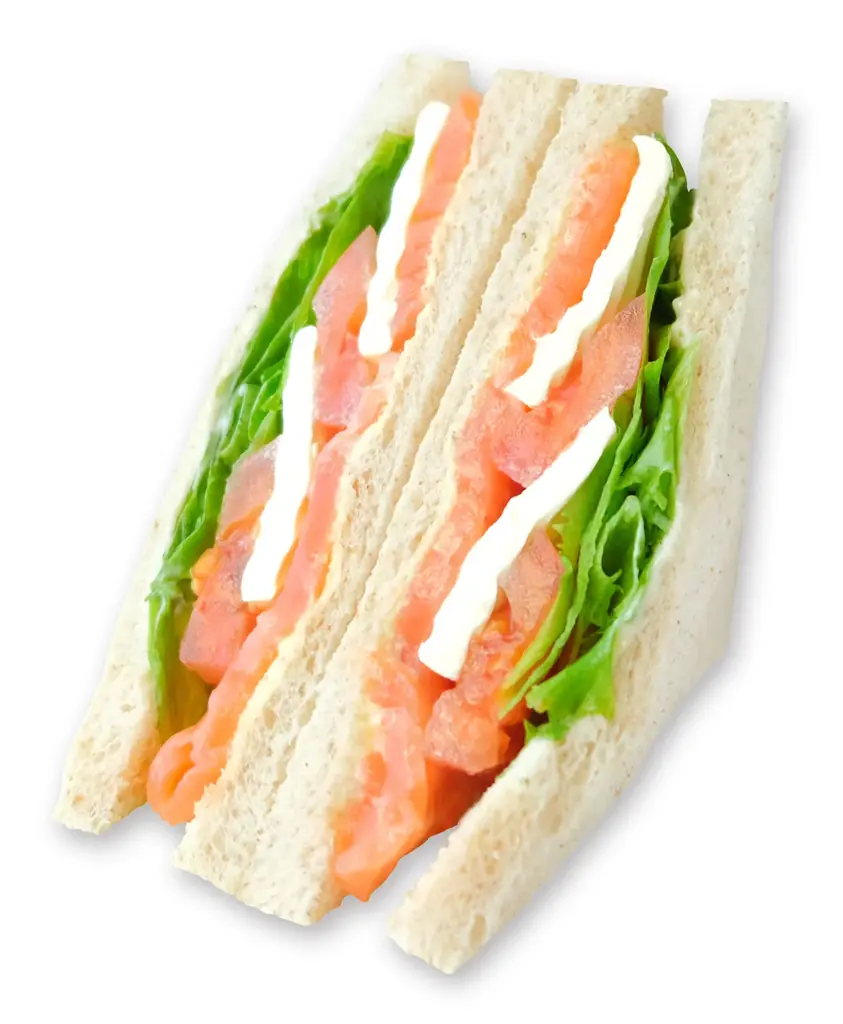 - 4位 スモークサーモンのカプレーゼサンド:北海道産の全粒粉食パンにスモークサーモン、クリームチーズ、トマトをサンドし、タルタルソースで仕上げた商品。夕食にも満足度が高い。