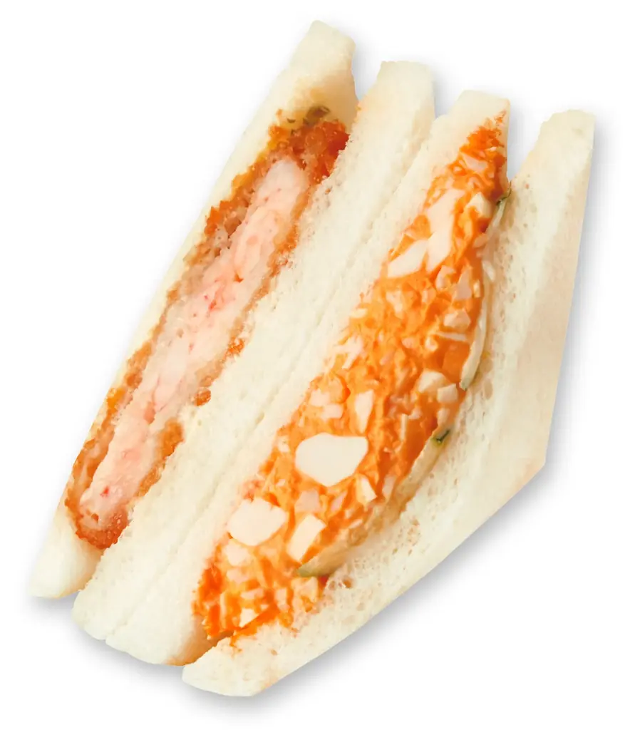 - 5位 ぷりぷりエビカツ&たまごサンド:タルタルソースのエビカツサンドと人気のたまごサラダサンドを組み合わせたセット商品で、二つの味が楽しめる。