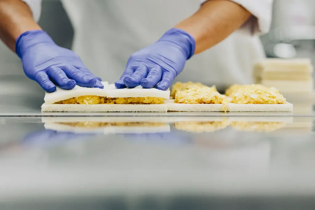 サンドイッチ専用のパンは、具材を引き立てる甘さと滑らかな口どけを実現するために粉の選定、発酵管理、焼成条件を調整して作られます。創業者の時代から続くレシピ改良の積み重ねが現在の味を支えています。