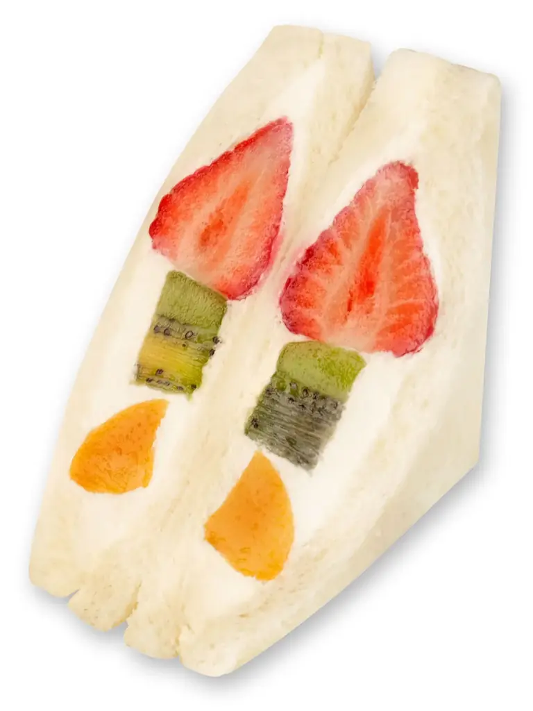 - 1位 ミックスフルーツサンド:年中揃えられるフルーツを使用。黄桃のコクと甘みが強いため、酸味のあるキウイを合わせることでバランスを取る構成。