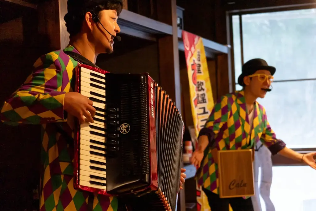 特徴:アコーディオンの音色と歌声に合わせ、観客が一緒に歌ったり踊ったりできる参加型のライブが特色です。