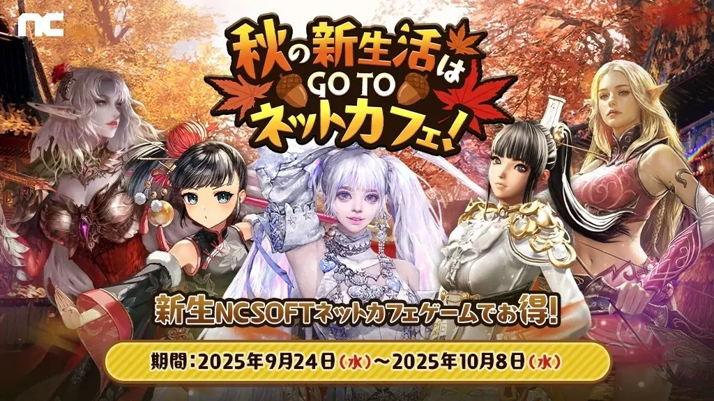 エヌ・シー・ジャパン株式会社は、PC向けオンラインゲームの指定タイトルを対象としたネットカフェキャンペーン「秋の新生活はGO TO ネットカフェ」を2025年9月24日から開催すると発表しました。プレスリリースは2025年9月24日 11時00分付で配信されています。
