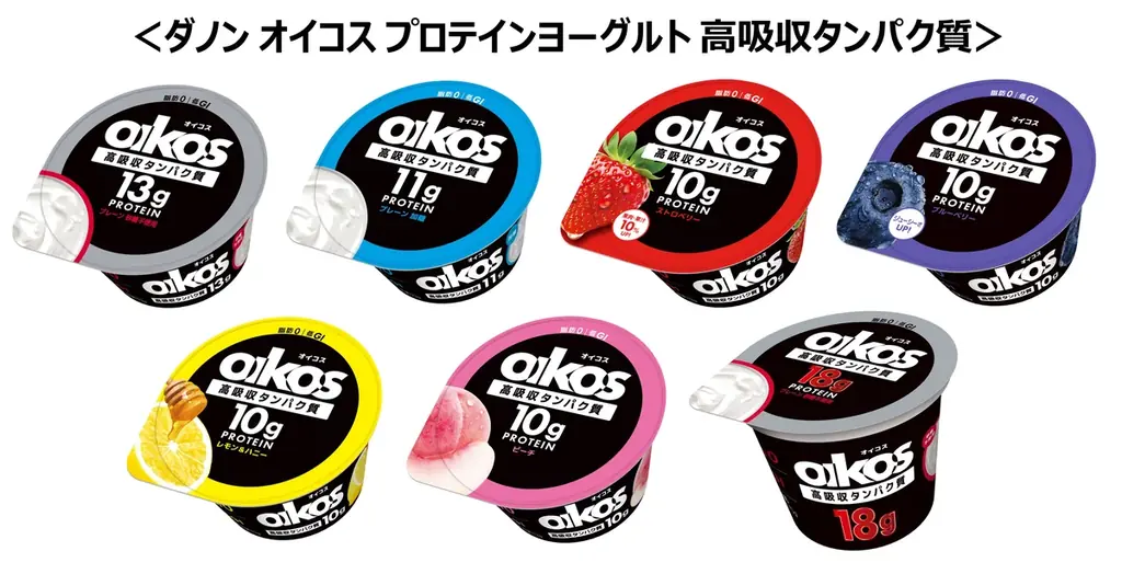 ラインアップは、プロテインヨーグルトが計7種類、プロテインドリンク(18g)が計5種類のフレーバー展開です。定番に加えて3か月・6か月ごとの期間限定フレーバーも順次提供されます。