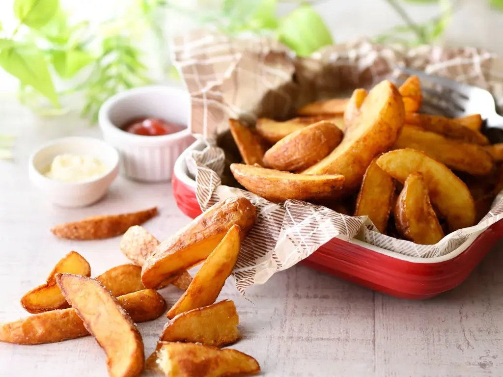 ナチュラルカットのポテトフライは皮付きに近い自然な形状でカットされ、外はカリッと、中はホクホクとした食感を狙ったものとなっている。じゃがいも本来の風味を感じやすく、シンプルながらも素材の良さが前面に出る一品である。