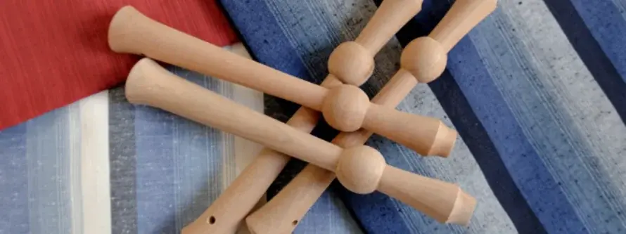 - 静岡挽物:轆轤(ろくろ)で削り出す手仕事により作られる丸みのある手元。使い込むほどに手になじみ、経年変化で色味や質感が深まる。