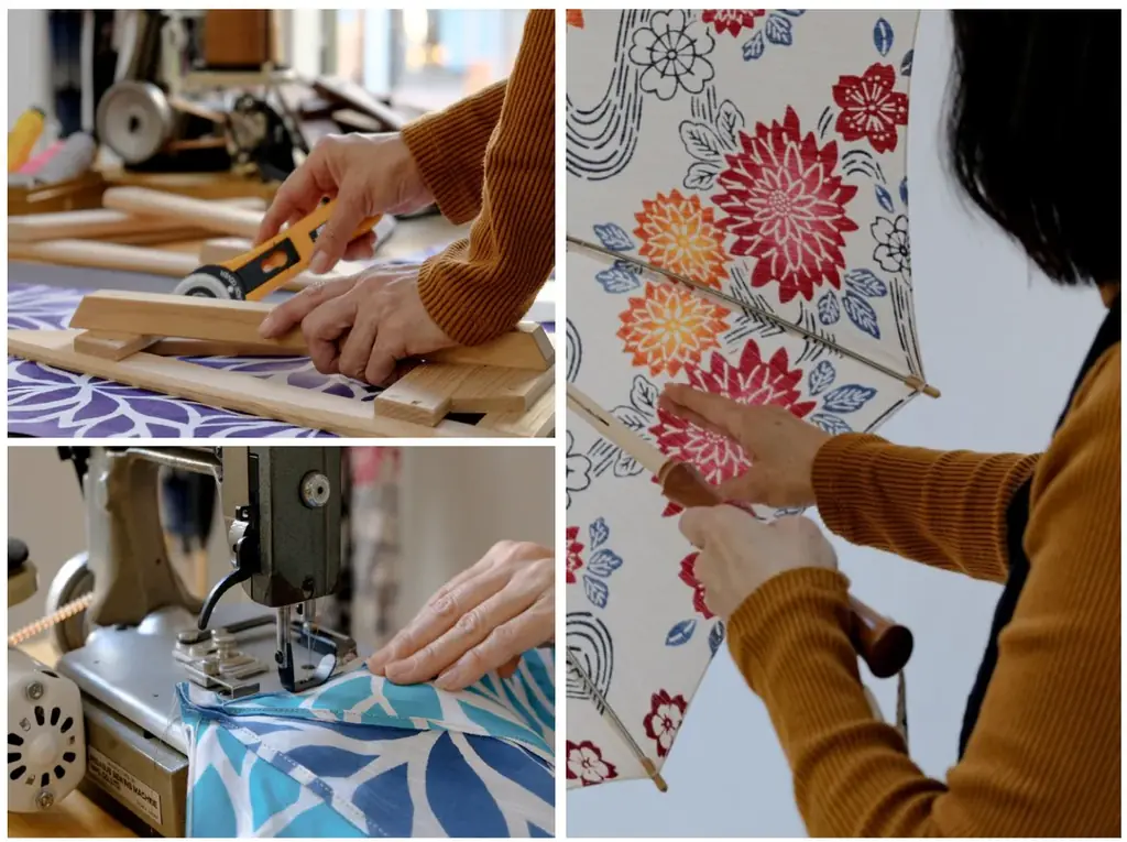 藤田屋では、傘づくりを一貫して担う職人が一本ずつ製作します。一般的な量産傘のような工程ごとの分業は用いず、アンブレラマスター(傘版のソムリエ)の資格を持つ職人が全工程を担当することで、全体の調和が取れた高精度な仕上がりを実現します。