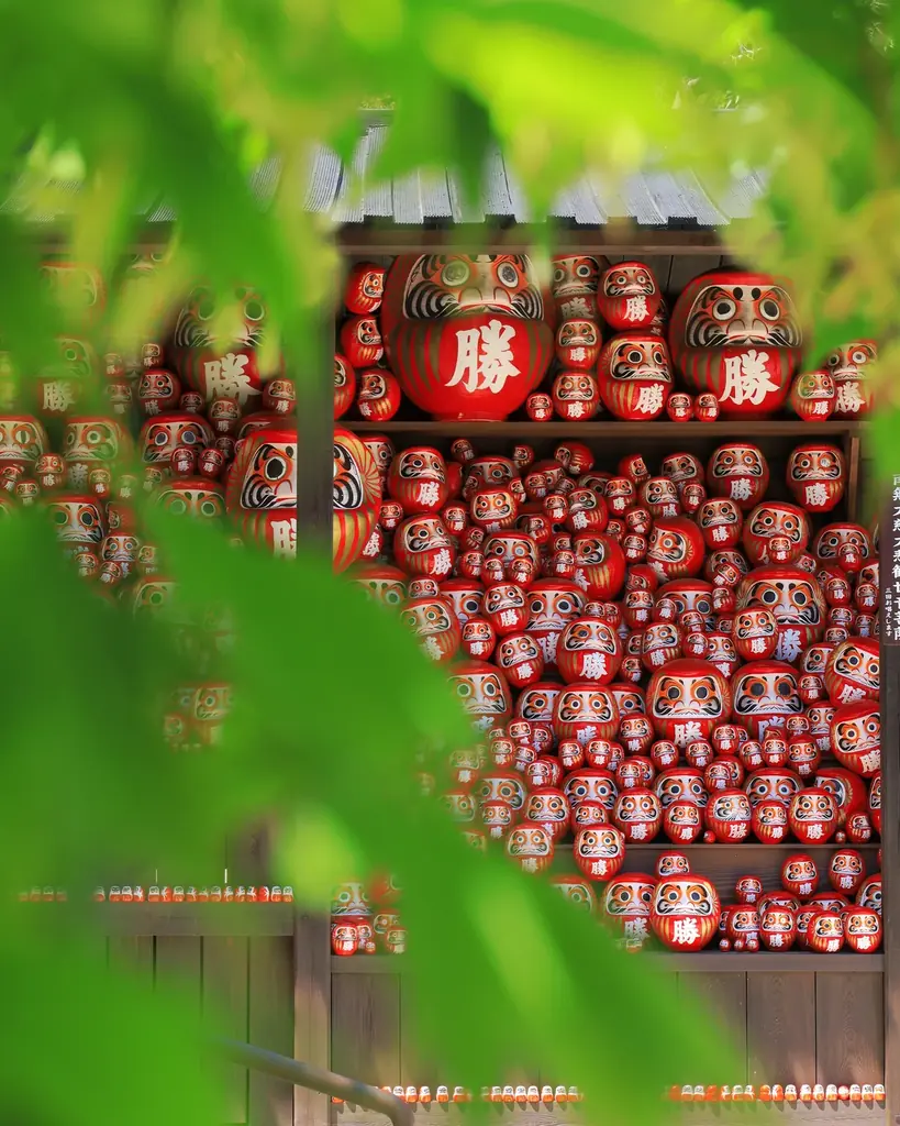 勝尾寺の「勝ちダルマ」は単なる願掛けの道具ではなく、目標達成のために日々努力することを自分自身と約束するための「自己誓約」の道具です。参拝者は自らの使命や一年の目標をダルマに書き入れ、線香の煙に潜らせた後に片目を入れて誓約を行います。