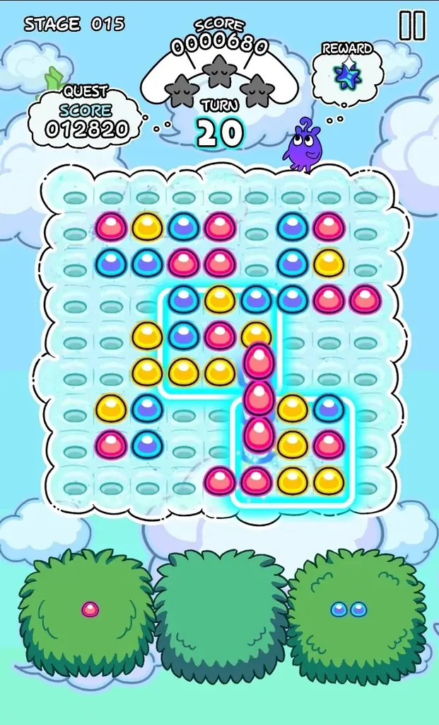 『SLAPPY』は、ブロックを盤面に置いて縦横や正方形のパターンを作りブロックを消していくシンプルなパズルゲームです。ゲームデザインはシンプルかつカンタンで、パズルの爽快感とやりこみ要素が両立されています。ステージのミッションを達成するとクリアとなり、報酬で島を育てる要素が組み込まれています。