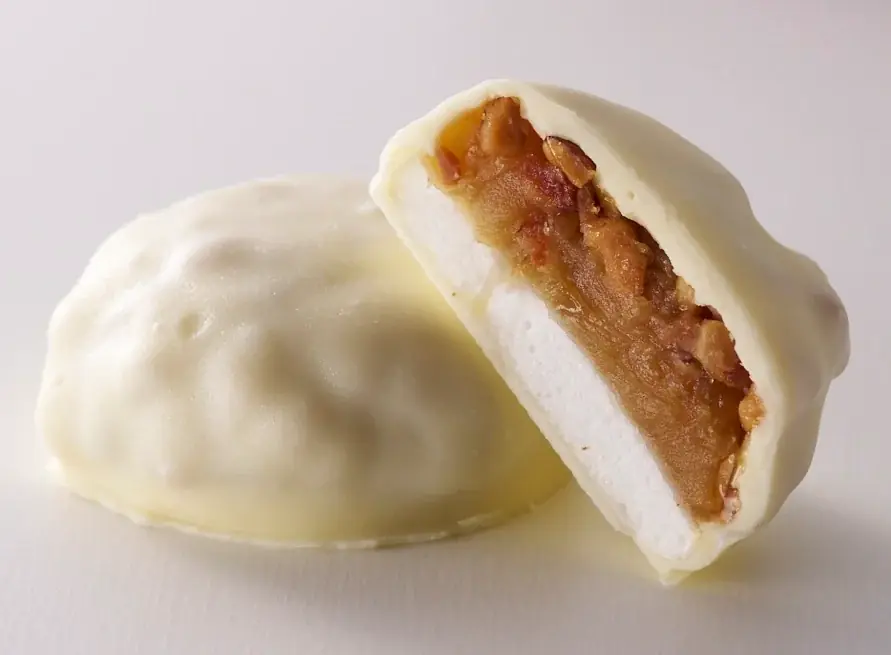 製法面では、マシュマロの軽やかな口当たりと、内部のペースト状のいも餡を崩さずにホワイトチョコレートで包む技術が求められます。石屋製菓の菓子づくりのノウハウが、食感と風味のバランスに反映されています。