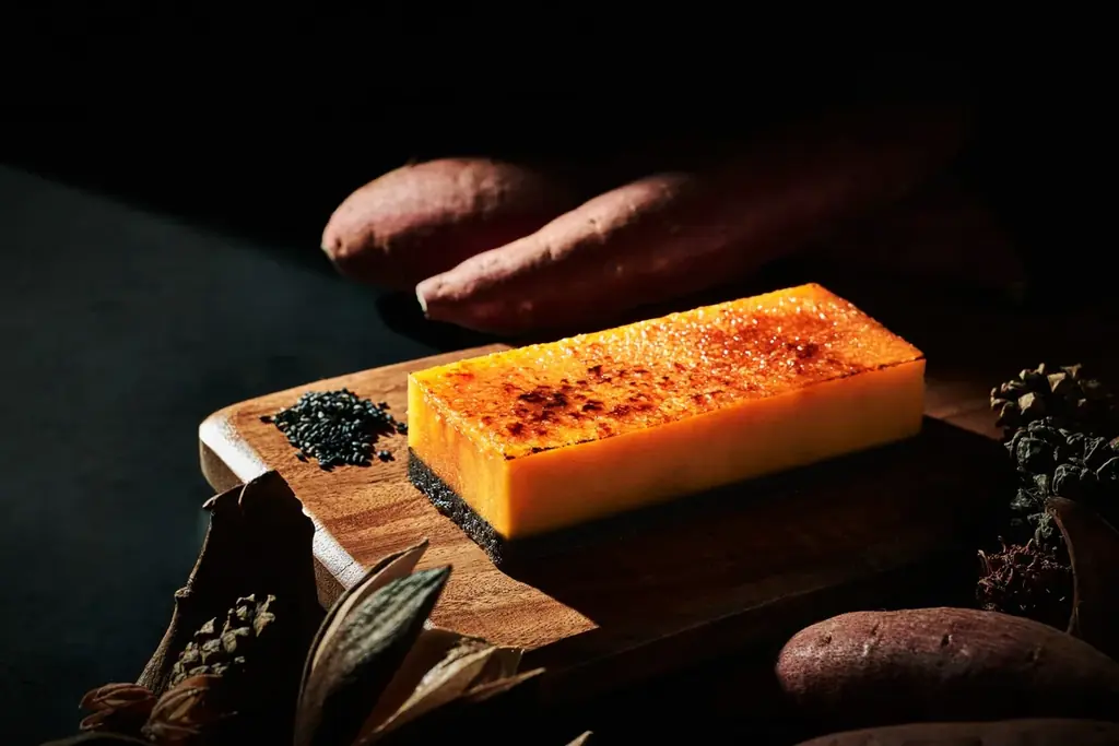 テリーヌのベースに採用された安納芋は種子島産で、ミネラル豊富な土壌で育てられたことにより収穫後の熟成で糖度が高まるとされる品種です。ねっとりとした食感と加熱すると“蜜が出る”ほどの甘みが特徴で、今回のテリーヌでは“天然のスイーツ”として素材の持つ自然な甘みを活かす方針が取られています。