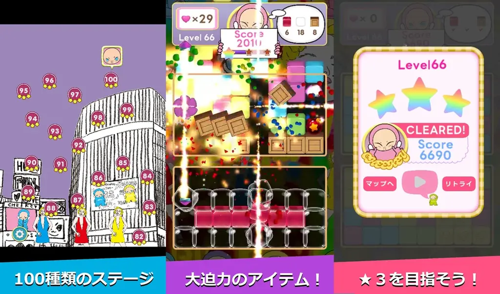 - 評価システム: クリア時のスコアに応じて最大3つの星を獲得