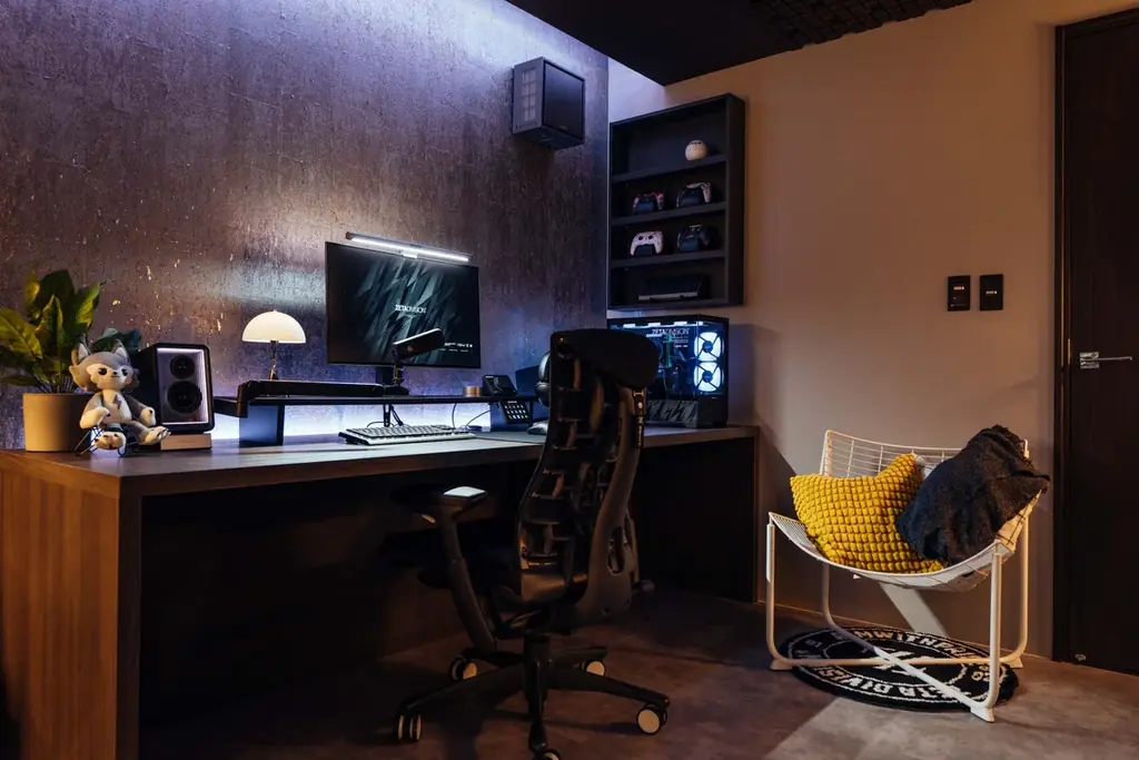『CLEVERLY HOME × ZETA DIVISION GAMING ROOM』は、ゲームプレイ時の操作性や視聴環境、音響行動、収納性に配慮した細部設計が特徴です。以下に挙げる要素は、住宅空間としての快適性を損なわずにゲーミング環境を高める設計です。