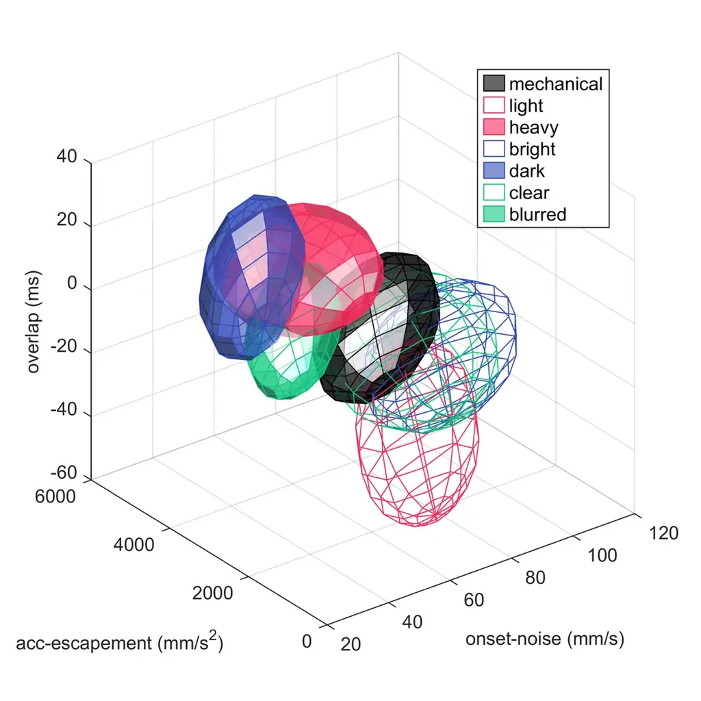 さらに、特徴の一つだけを変化させた「単一特徴変化」実験により、他の特徴量がほぼ同一(差異5%未満)である条件下でも、当該特徴の違いのみで聴取者が異なる音色を識別できることが確認されました。これにより、鍵盤の動きと音色の間に因果関係が存在することが実験的に同定されました。