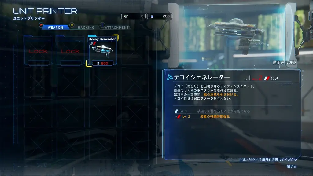 - 生成/強化:3Dプリンターで武器・ハッキングノードを生成・強化(ステージで一度データ取得が前提)。