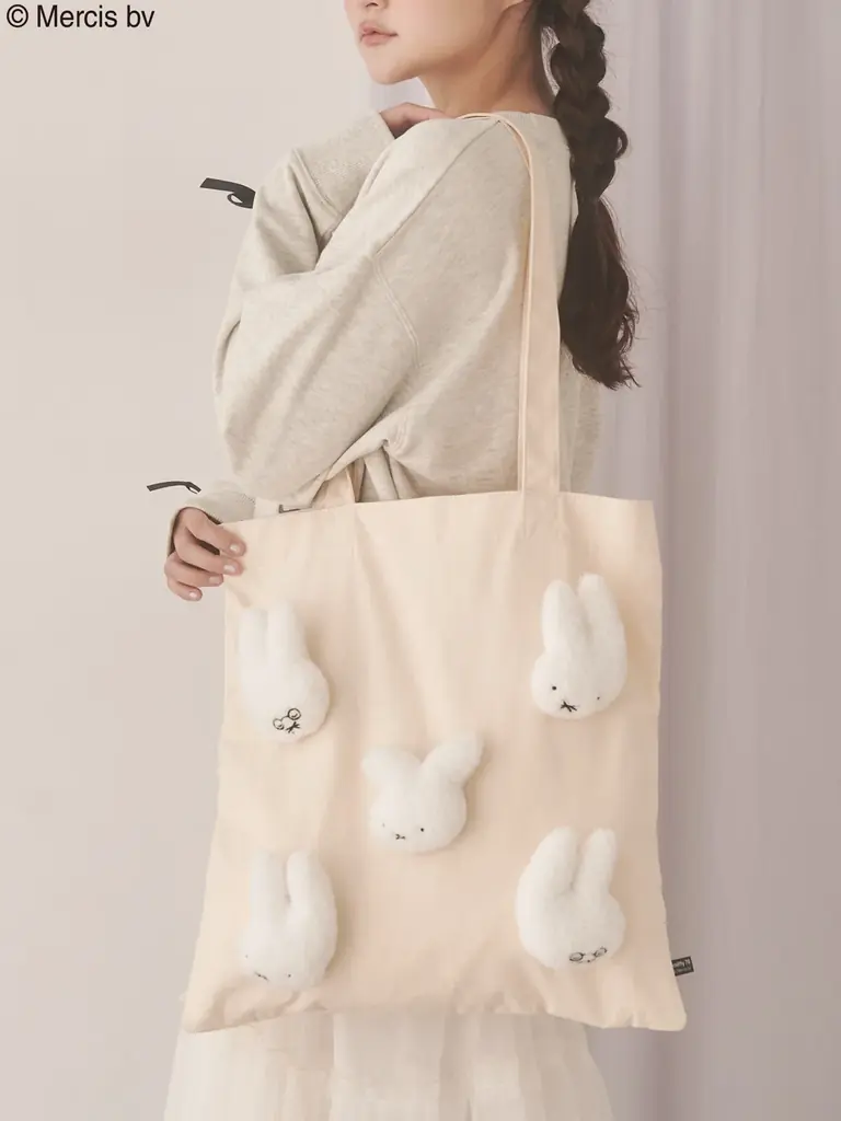 キルト加工のミニトートにナインチェが並んだデザインで、ほっこりした柔らかな印象を与えるアイテムです。サブバッグとしての利用を想定したサイズ感で、ちょっとした外出や荷物を減らしたい場面に適しています。