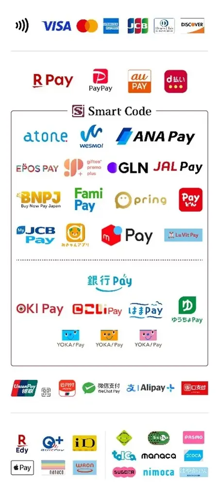 支払い方法は現金のほか各種キャッシュレス決済に対応します。クレジットカードは一括払いのみで、電子マネーのチャージは不可です。現金とキャッシュレス決済の併用支払いはできません。