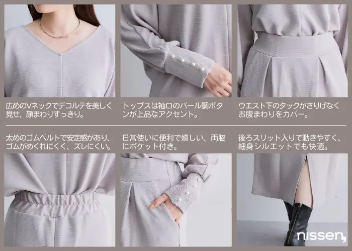 第1弾となった「万能ワンピース」は、発売直後から売り切れサイズが相次ぎ高い反響を得ました。第2弾は“着回し”をテーマに、日常からオフィス、ちょっとしたお出かけまで幅広く対応できるセットアップをラインナップに加えています。プレスリリースの日時と発売開始時間は、ニッセンの公式アナウンスに基づき明示されています。