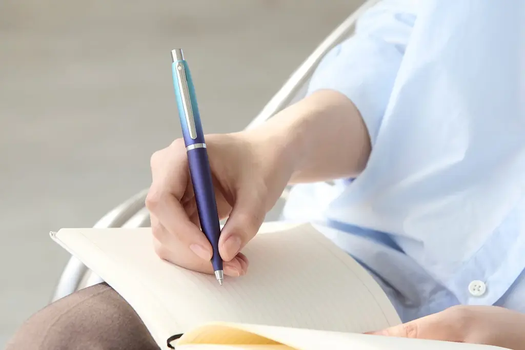 VFMラインのボールペンは、手に取りやすい価格帯でありながらエクスプレッションズのカラーパレットを反映したモデルです。ブルーからパープルへと移行するパール調グラデーションが特徴で、流動的かつ独創的な印象を与えます。