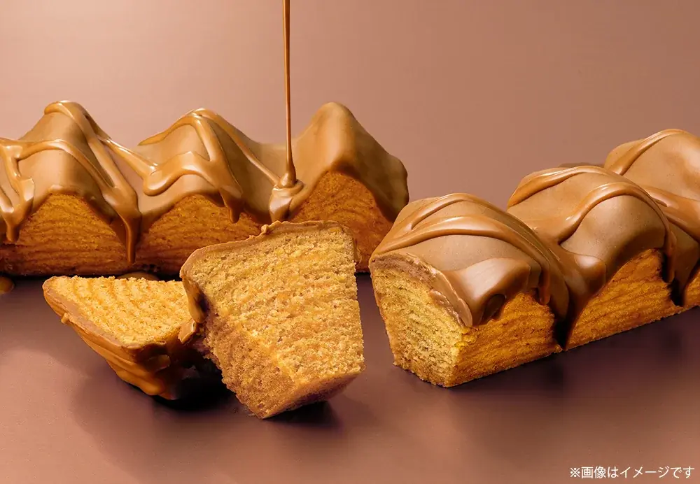 「マウントバーム 蜜芋キャラメルデコレ」は基本となる生地に蜜芋のペーストを練り込み、さらに隠し味として黒糖蜜を合わせることで深みのある甘さとコクを実現しています。上掛けにはビターなキャラメルショコラを使用し、蜜芋の自然な甘みとキャラメルの濃厚さがバランス良く調和する設計です。
