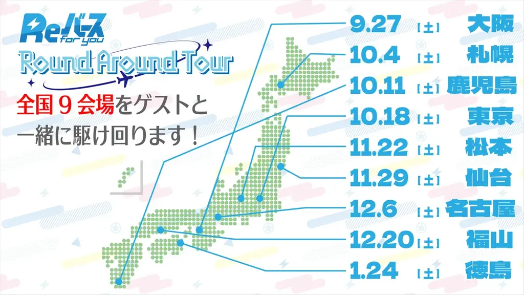 発表会の中で特に紹介されたのが、『Reバース for you』関連のイベント情報です。今回のシーズンにおいては、ゲストを迎えた形で全国9会場を巡るツアー「Round Around Tour」の開催決定が発表されました。