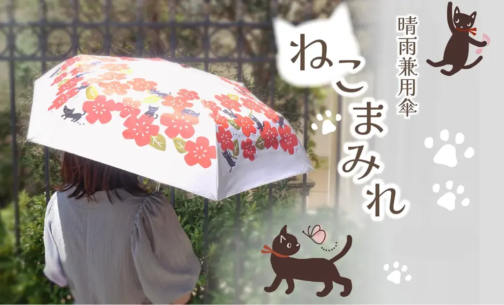 - 『ねこまみれ』:猫好きのためのデザイン傘。猫モチーフが全面にあしらわれた愛らしいライン。
