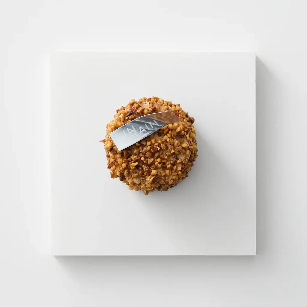 - ナッツの香りが香ばしい伝統菓子「シュクセ」をUN GRAIN流に仕立てた一品。考案者は昆布智成シェフ。食感と風味のバランスを重視。