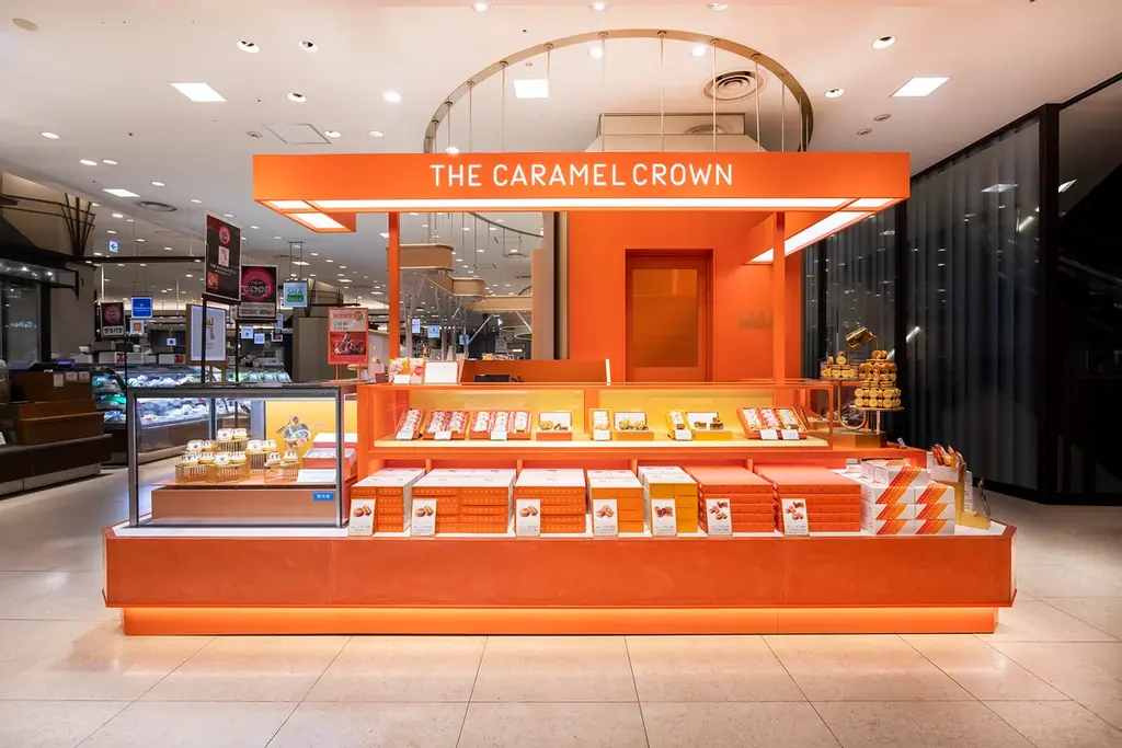 THE CARAMEL CROWNは、グレープストーンが運営するスイーツブランドで、ブランドストーリーは「とろけるキャラメルと、溢れるバターの香りの出会い。黄金に輝くキャラメルの王冠を纏った王子が放つ艶めきはおいしさの証」としています。阪急うめだ本店には2025年4月にオープンしました。