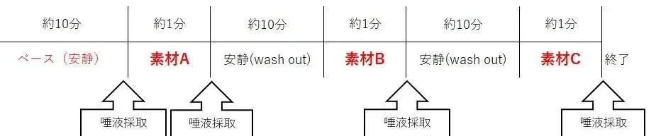 - それぞれの生地に触れた後に唾液を採取する