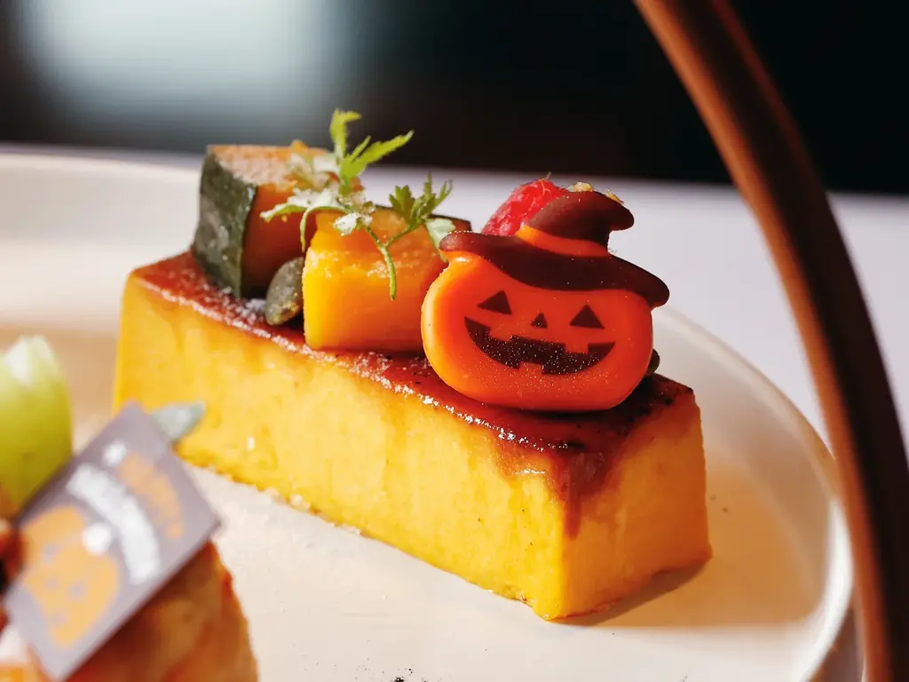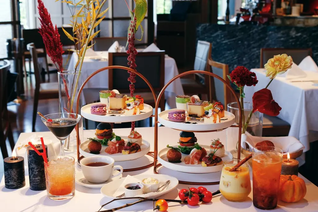 本企画は、USDAプライムビーフを使ったセイボリーと、かぼちゃや洋梨、柿など季節の果実を取り入れたイタリアンスイーツを組み合わせた、見た目と味わいの両面で季節を感じられるアフタヌーンティーです。ティースタンドはハロウィンカラーで装い、従来のカフェフリーに替わり、シャンパーニュ、カクテル、ノンアルコールドリンクから選べる1ドリンク付きでの提供となります。