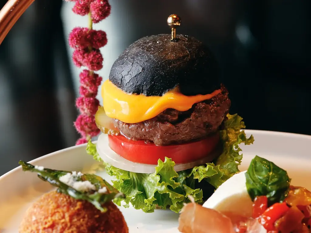 - USDA PRIME BEEFのミニハンバーガー~ハロウィンVer.~ — 当店自慢のミニチーズバーガーを竹炭バンズでハロウィン仕様に。