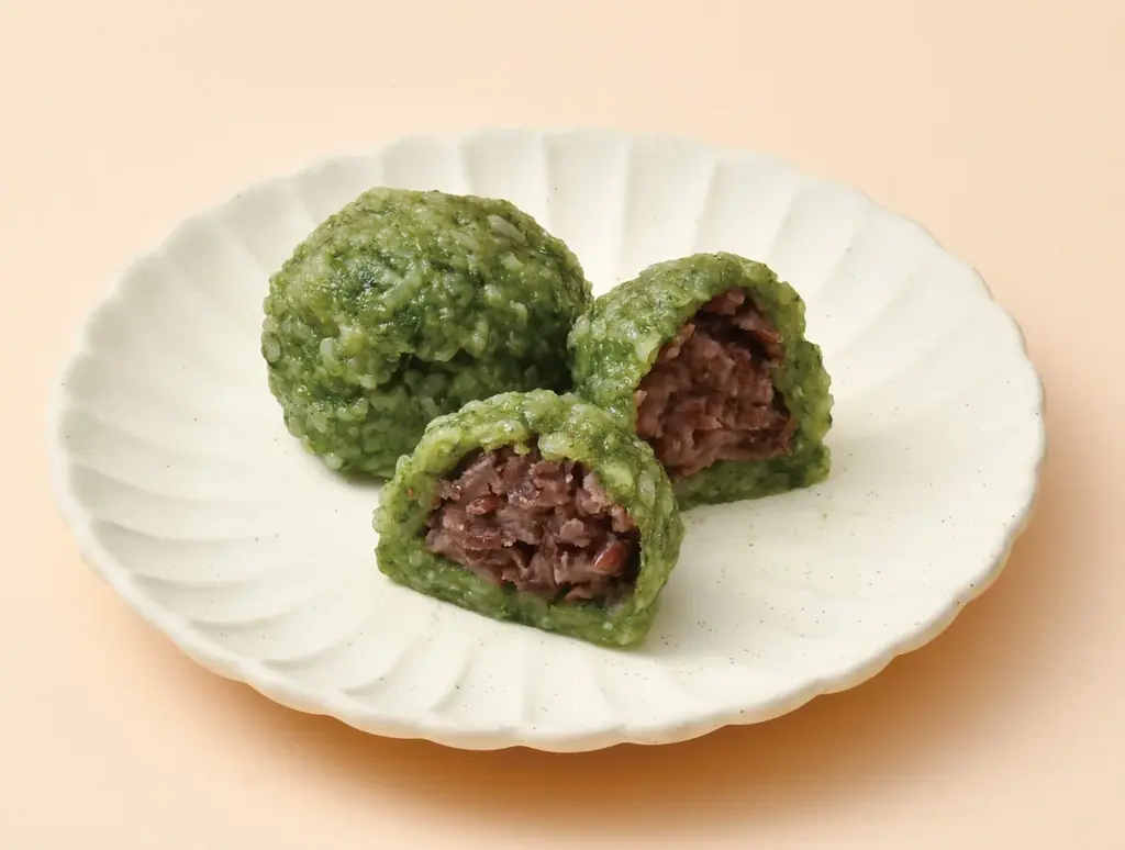 - 熊野本宮・釜餅(よもぎ)(1袋/4個入) 777円 ※限定30袋/セレクトコーナーにて販売。おはぎとも大福とも異なるふんわりとした食感に、よもぎの香りとほんのり甘い粒餡。