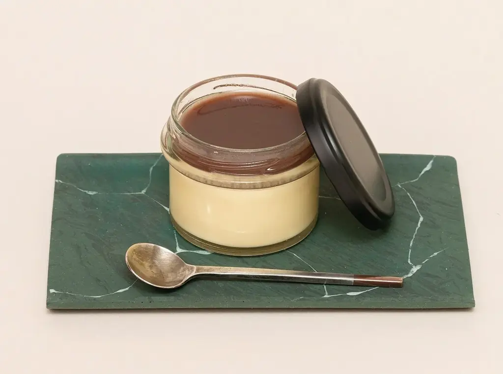 - こしあんのプリン(1個) 650円。こし餡とプリンが口の中で溶け合うなめらかさを楽しめる和洋折衷の一品。