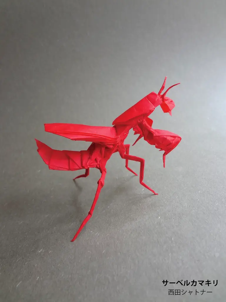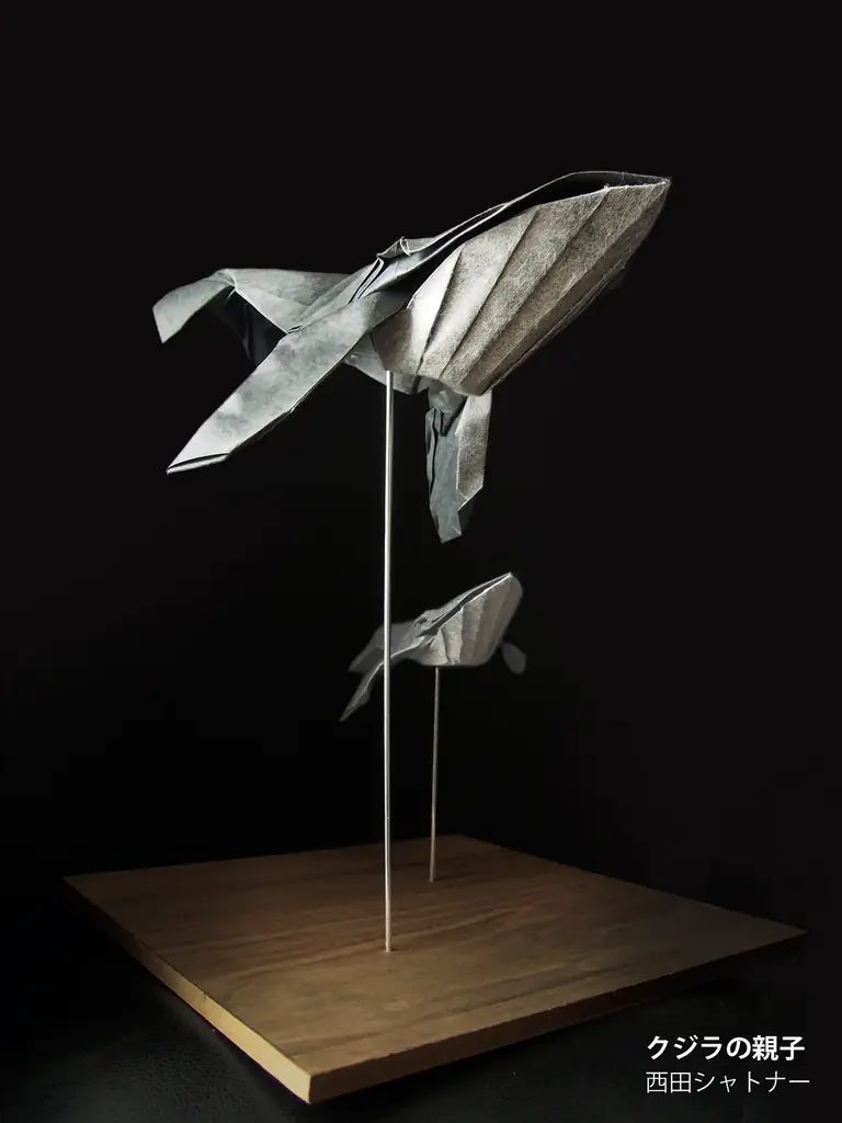 西田シャトナーは大阪出身の折り紙作家で、1枚の紙から無限に広がる生物の進化や形態を再現する作品を制作している。展示には「サーベルカマキリ」「クジラの親子」「不純物100%」などの作品が含まれ、折り紙の造形性と生物の有機的な広がりがテーマとなる。