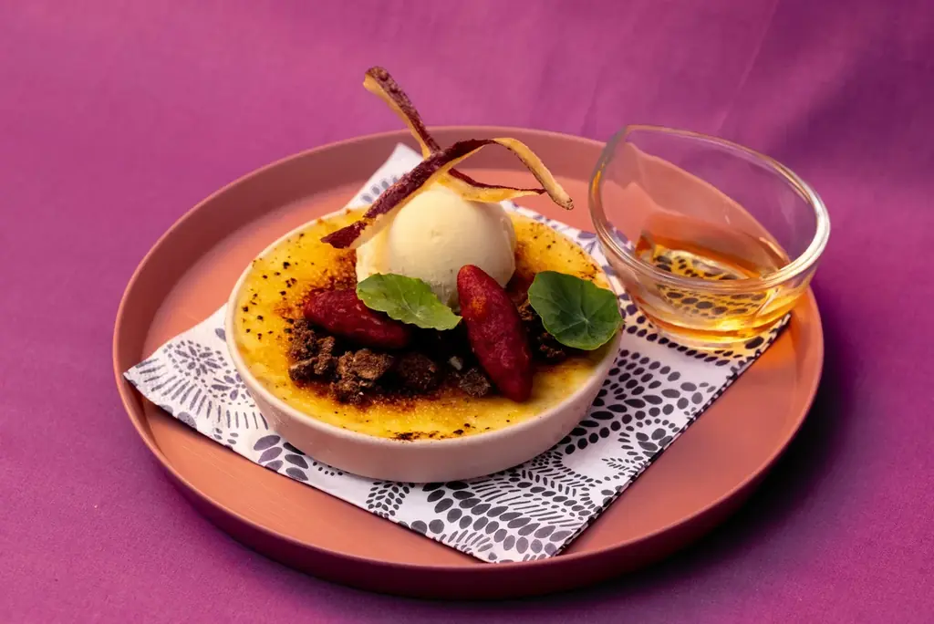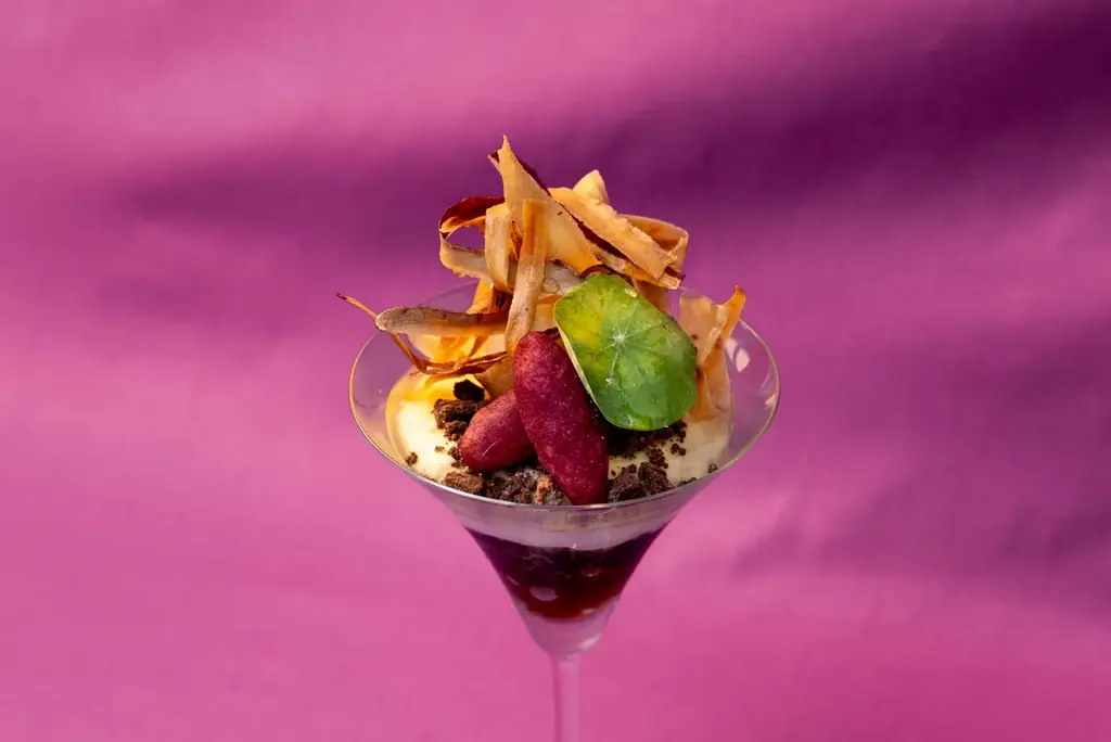 - 川越いもと紅茶の秋パフェ 980円(税込) — 川越いもをなめらかなクリームにし、香り豊かな紅茶のジュレやアイスを重ねた秋限定のパフェ。