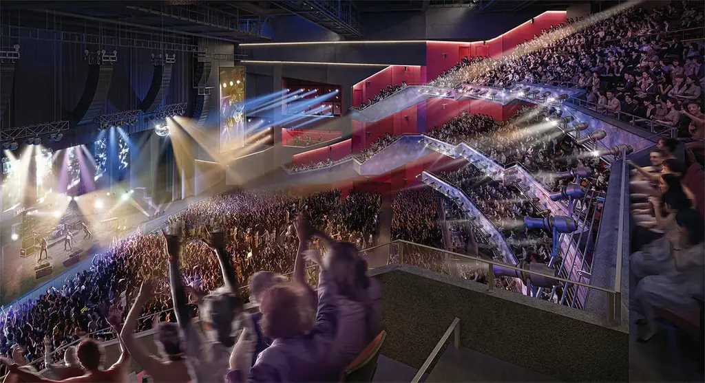 着席時約3,700席、スタンディング時最大約5,000人を収容できる規模を確保し、世界最高峰のイマーシブオーディオシステムなど最新鋭の機器を導入します。ドームやアリーナで活躍するスーパーアーティストの公演が見込まれており、音楽ライブに特化した設備と音響が据えられます。