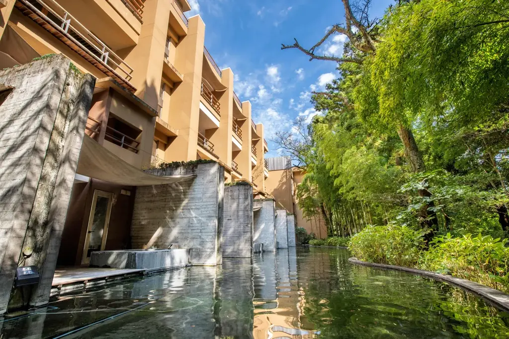 全9タイプの客室はすべて自家源泉かけ流しの露天風呂付き。2024年にはプール・サウナ・ジムが新設され、古民家改装スパや神奈川県唯一のプレミアムビーフを提供する鉄板焼店を備えたラグジュアリー総合リゾートです。