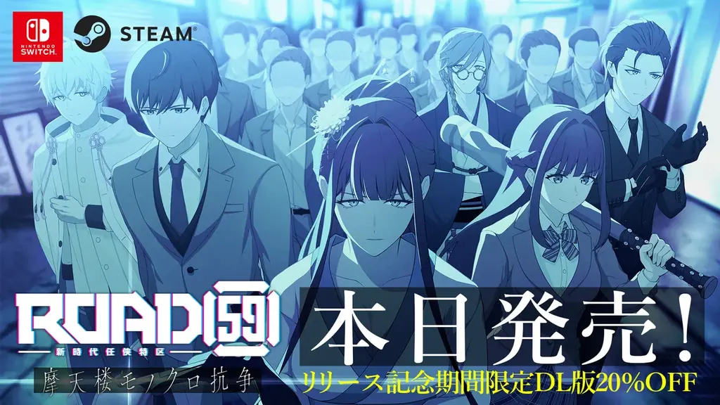 株式会社ブシロードは2025年9月25日(木)に、Nintendo Switch™およびSteam®向けビジュアルノベルゲーム「ROAD59 -新時代任侠特区- 摩天楼モノクロ抗争」を発売しました。発表日時は2025年9月25日 18時00分のリリース情報に基づきます。ブシロードの企画・原作による本作は、摩天楼が立ち並ぶ人工都市・天海区を舞台に、特殊な力を巡る抗争と人間模様を描くストーリーが中心です。