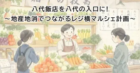規格外で通常は廃棄されることのある地元野菜を、レジ横の小さなマルシェで販売し、生産者と消費者を直接つなぐ取り組みです。地域内外に八代の食の魅力を伝え、食品ロス削減にも寄与します。