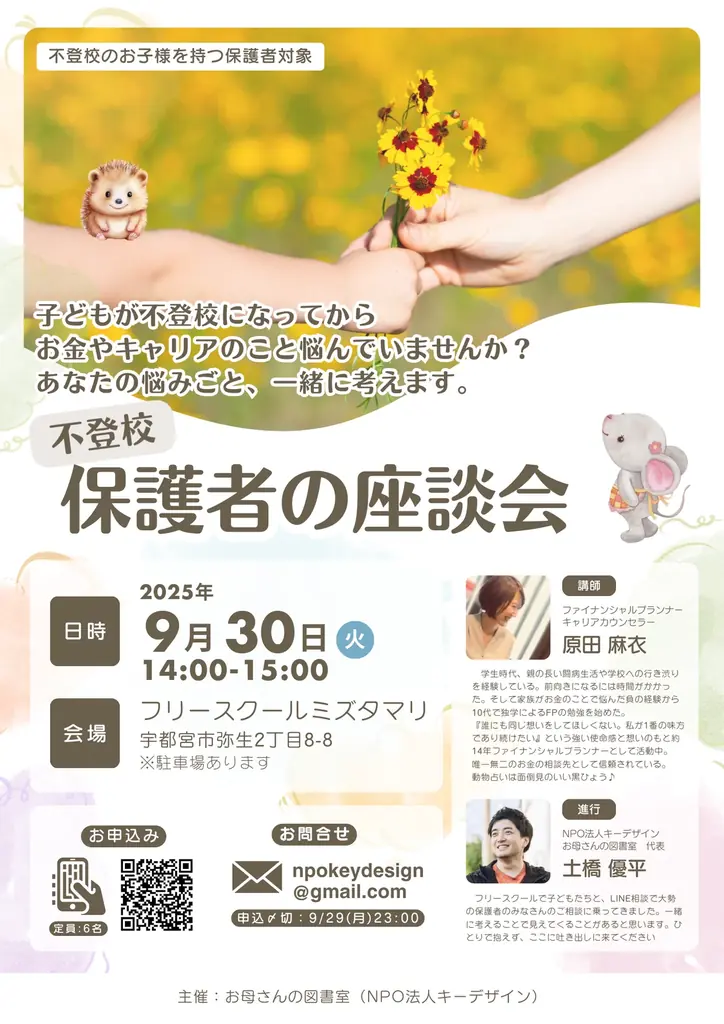 9/30開催 宇都宮で不登校保護者の座談会 家計とキャリアをFPと相談