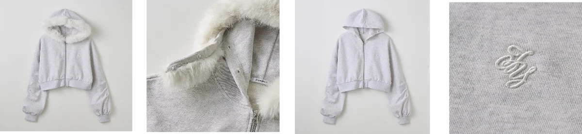 取り外しフェイクファー付き 袖タックコットンスウェット ショート丈ジップパーカ