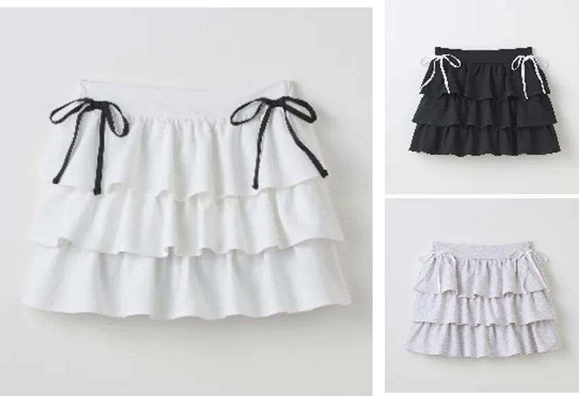 インナーパンツ付き サイドリボン コットンスウェット ティアードミニスカート