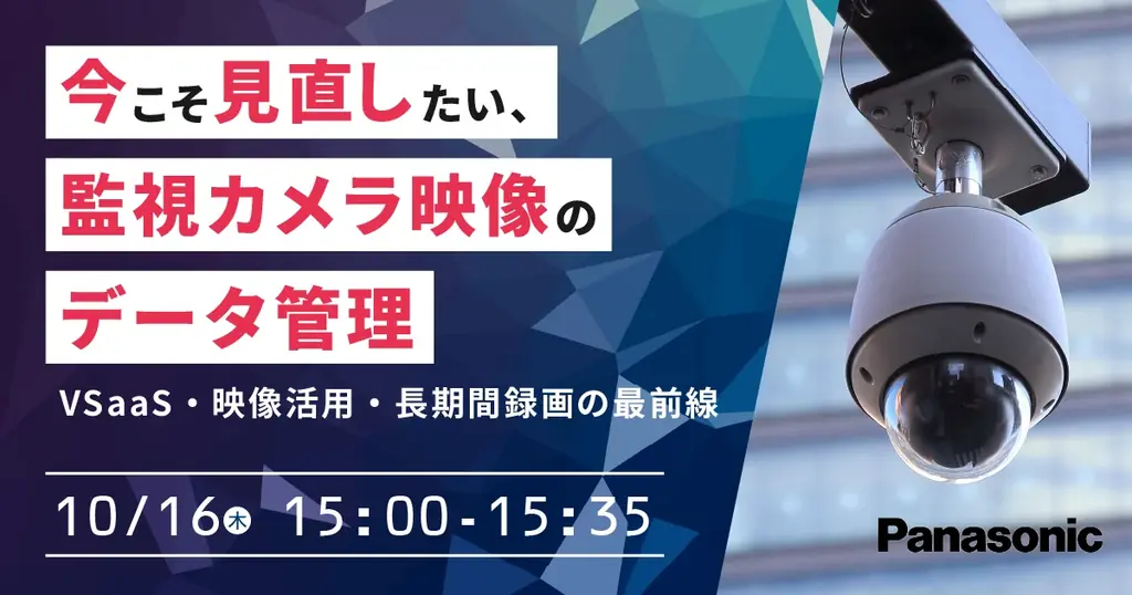 パナソニック インフォメーションシステムズ株式会社は、2025年10月16日(木)にオンラインセミナー「今こそ見直したい、監視カメラ映像のデータ管理 VSaaS・映像活用・長期間録画の最前線」を開催すると発表しました。プレスリリースは2025年9月26日11時00分に配信されています。本記事ではその概要と、セミナーで扱う主要テーマを整理してお伝えします。