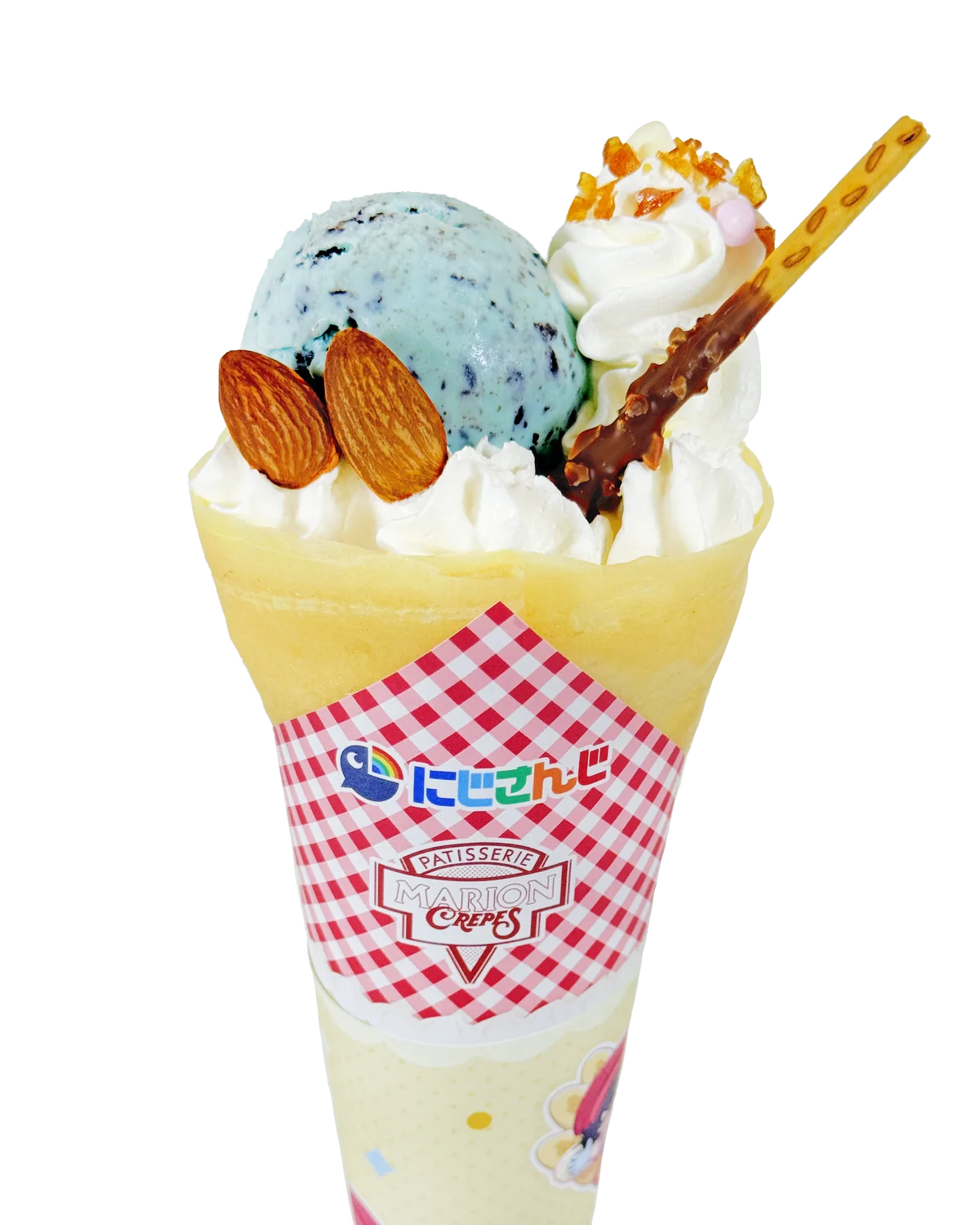 - コラボクレープ購入特典:ノベルティ巻紙(全4種)をランダムで1枚付与。加えてコラボ限定デザインのクレープ巻紙(全1種)も使用