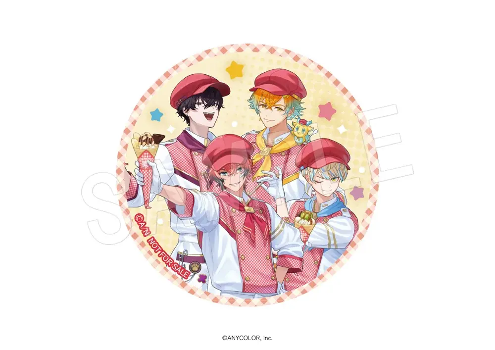 主な商品・価格 | 等身アクリルスタンド 1,650円 / トレーディングアクスタ 660円(単品)~ / トレーディング缶バッジ 550円(単品)~ / クレープ型キーホルダー 880円 / フレークシールセット 880円 / ハンカチ 1,320円 |