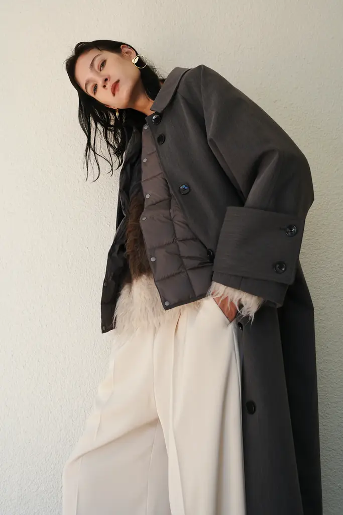 製品詳細──取り外し可能なインナーダウン付きステンカラーコートの仕様