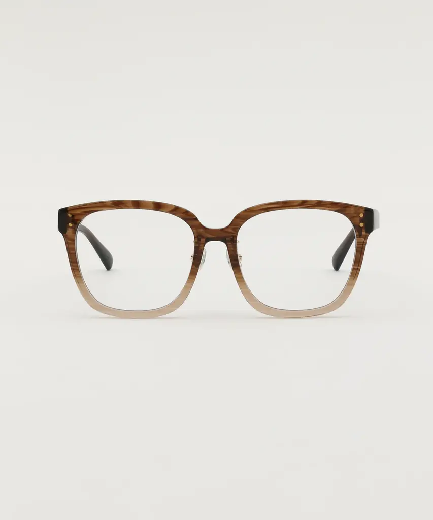 ブラウンとクリアのグラデーションを採用したモデルで、大きめフレームの主張を抑えつつも個性を表現する色設計となっています。
