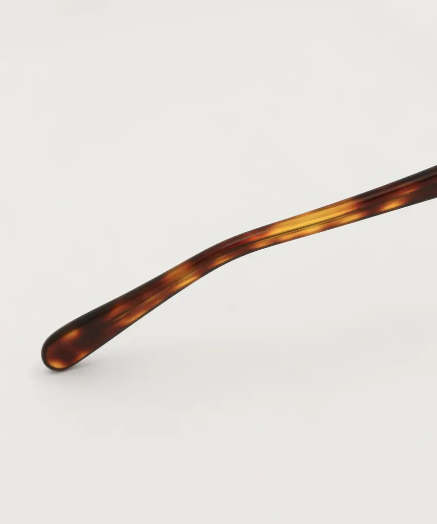 べっ甲柄のアクセントがフレームの一部に入り、さりげない個性を演出します。クリアカラーは肌なじみが良く、日常のスタイルに自然に溶け込みやすい点が特徴です。