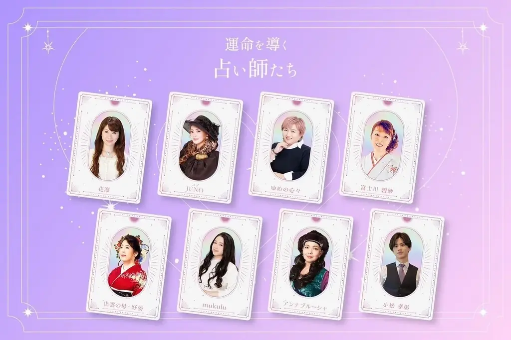 出演占い師(8名) | 花凛、JUNO、ゆめの心々、富士川 碧砂、出雲の母・好晏、mukulu、アンナブルーシャ、小松 孝彰(各占術の詳細は本文参照) |