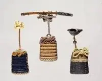 - 江戸時代後期(19世紀)所蔵の各種煙草入れ(正平革鎧形一つ提げ煙草入れ、獅子牡丹文様染革鎧形一つ提げ煙草入れ、鎧形一つ提げ煙草入れ)
