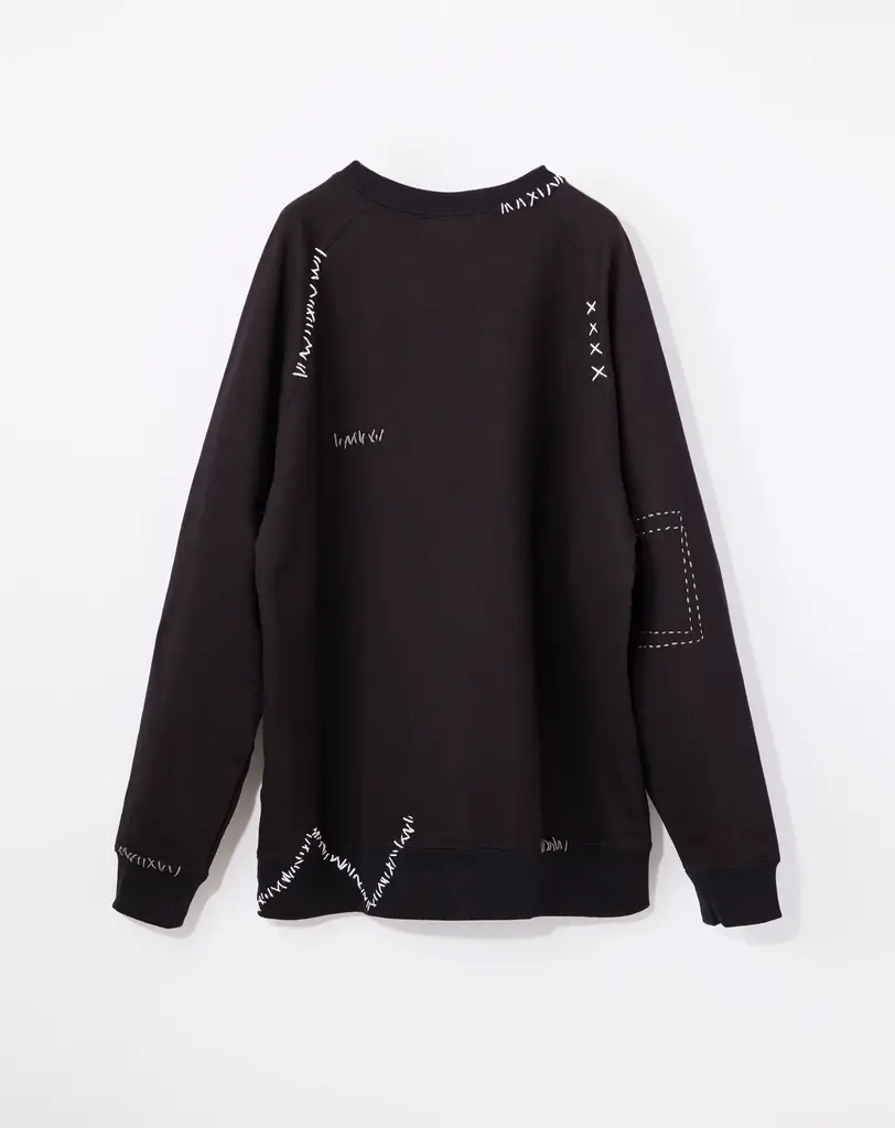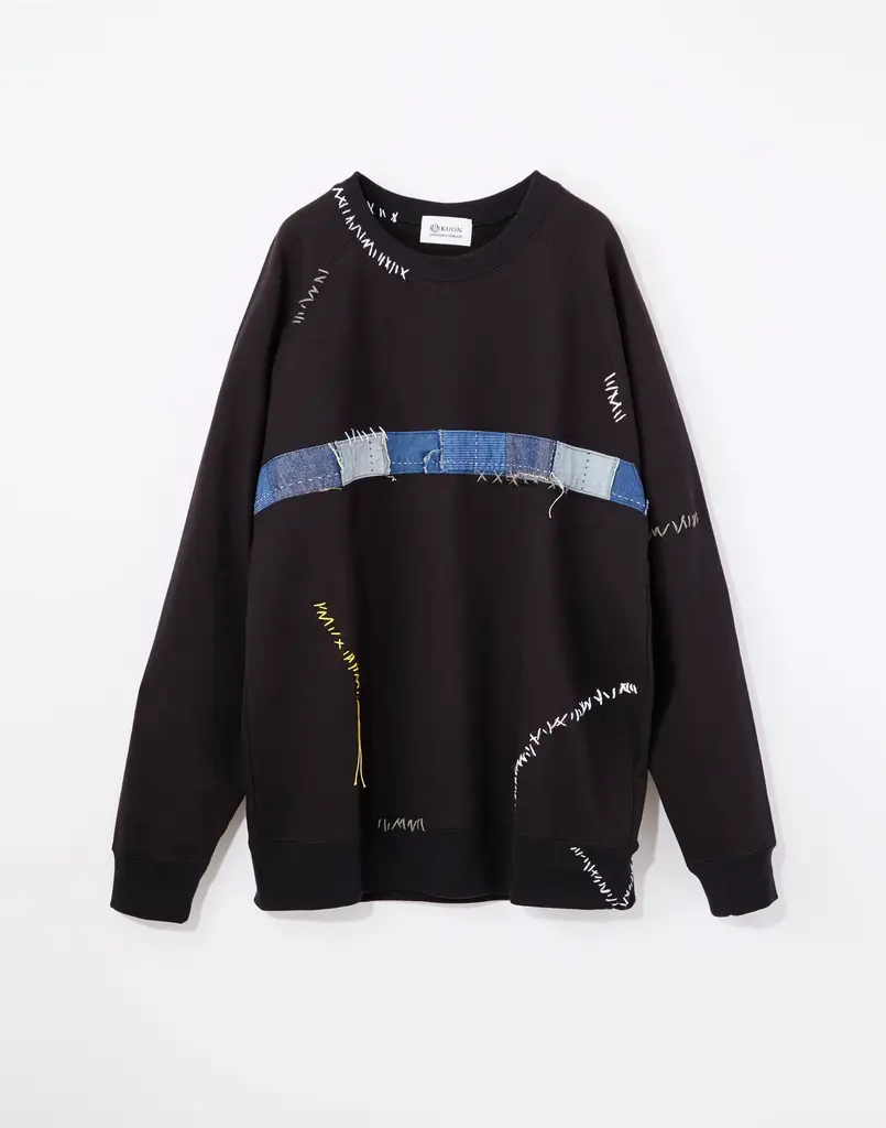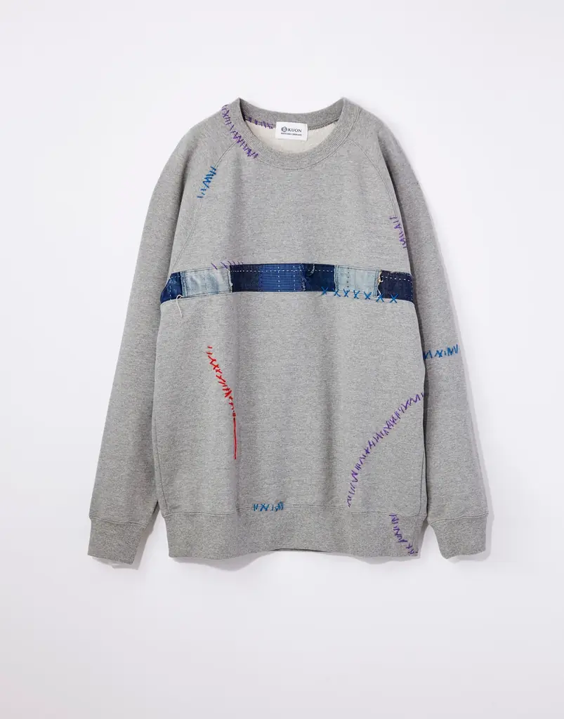 別注スウェット | 〈KUON〉ボロを使用、サシコギャルズによる刺し子施術/ブラック・グレー 各47,300円(税込) |